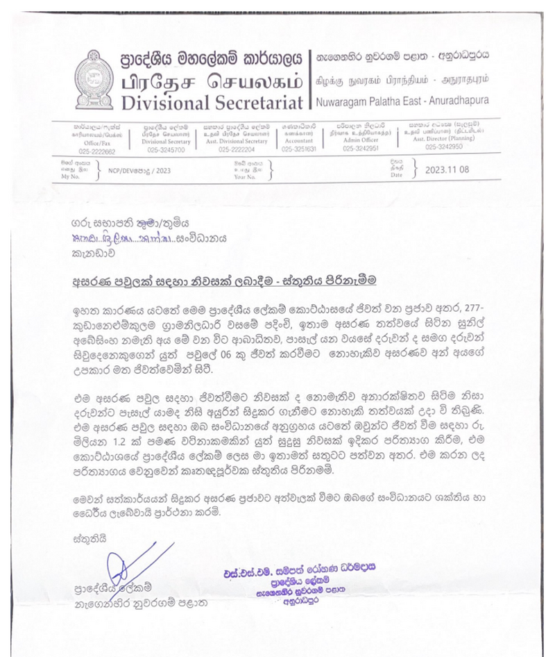 Beyond the housing project, we extended our assistance to the local community by contributing school books to the book bank overseen by the Anuradhapura Divisional Secretariat. These books will greatly benefit underprivileged children in the region.